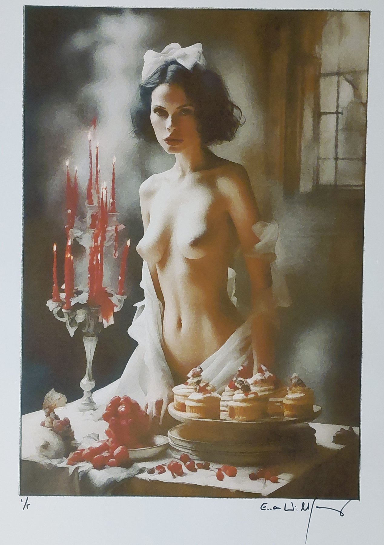 Another intriguing motif that appears in this series is elements like cakes or a cake with candles. These sweet temptations not only represent life’s pleasures but also serve as symbols of allure and delight. They add an unexpected yet welcomed touch of playfulness and invite the viewer to immerse themselves in the world of sensual pleasures.