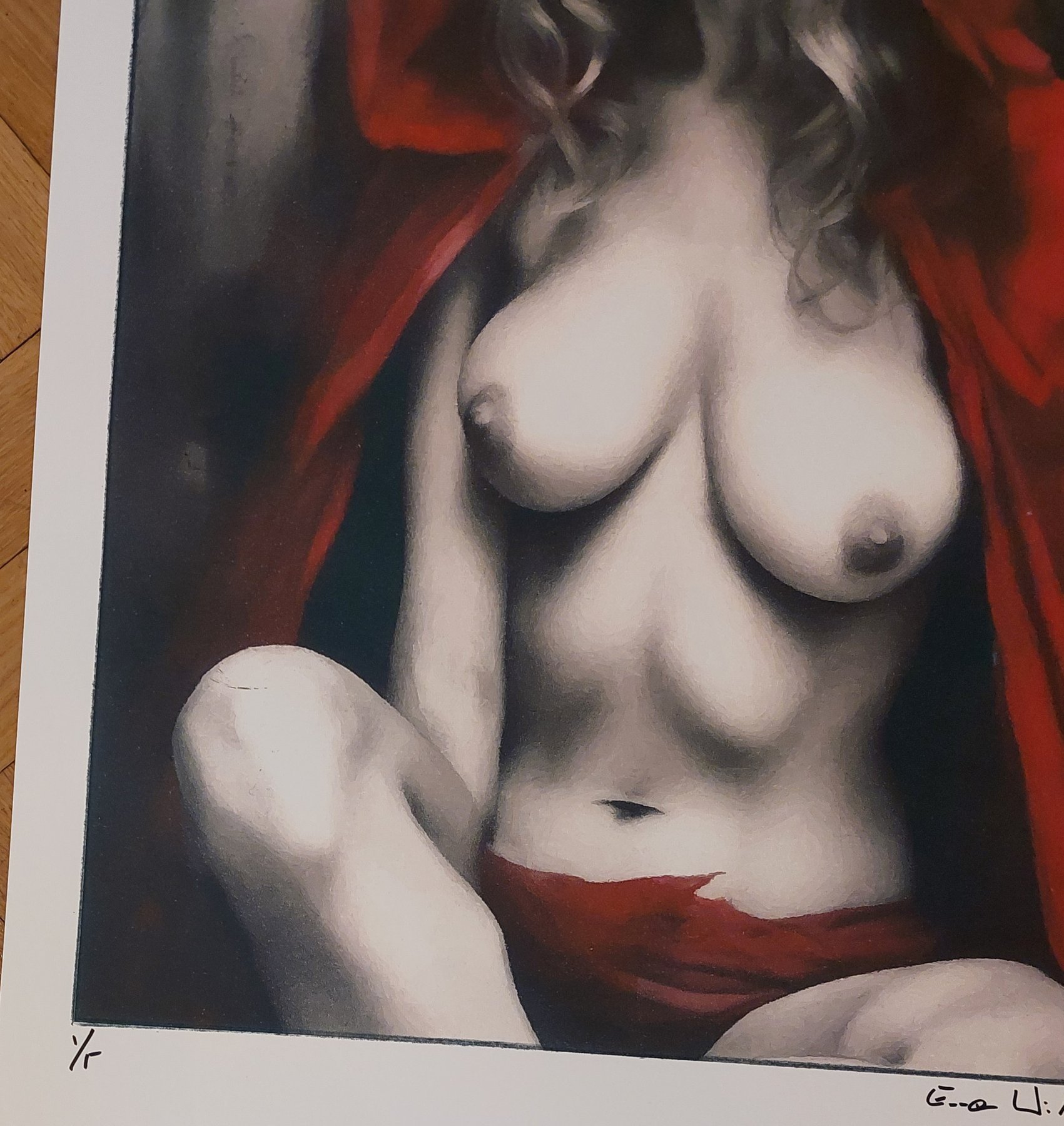 This is a fine art high-quality giclée , numbered and hand signed by Emma Wildfang, the creator of the original drawing . It’s the edition 1/5 printed on 250 g acid-free paper .