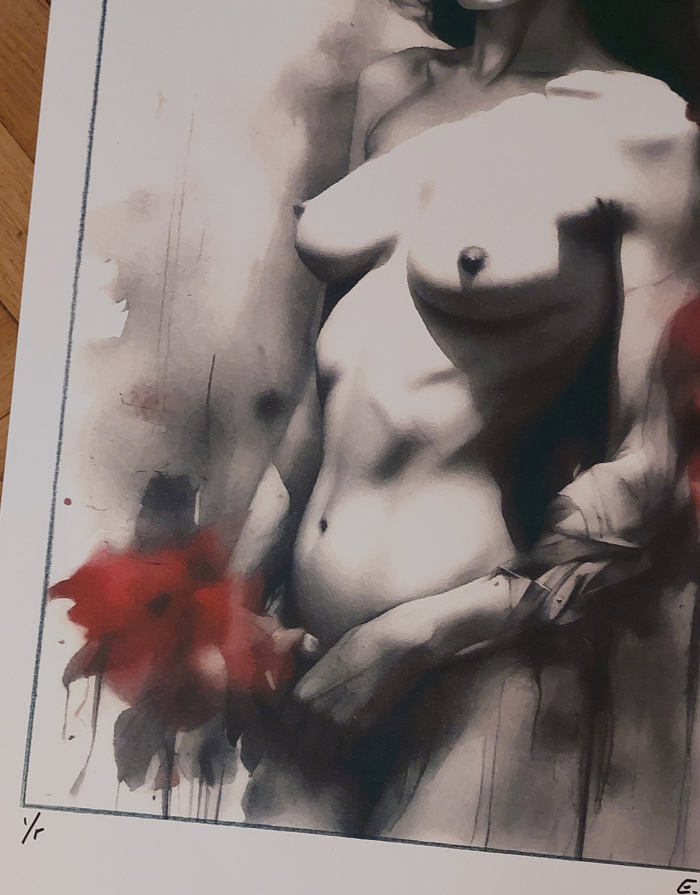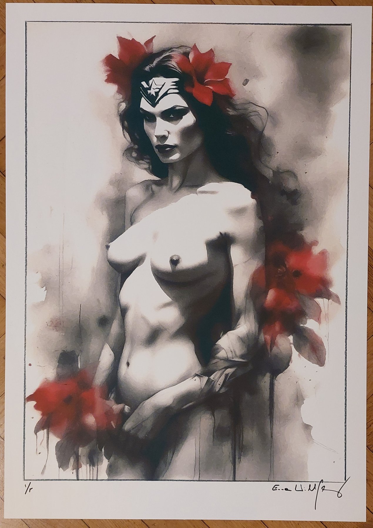 This is a fine art high-quality giclée , numbered and hand signed by Emma Wildfang, the creator of the original drawing . It’s the edition 1/5 printed on 250 g acid-free paper .